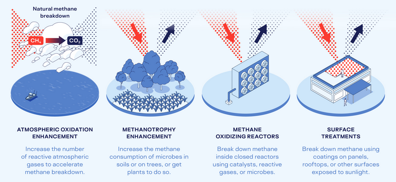 A philanthropically funded nonprofit, Spark Climate Solutions works with scientists, policy makers, and peer organizations, to identify and mitigate sources of unmanaged climate risk. 29 As part of their portfolio, they serve as a catalyst for the emerging field of methane removal, a potential suite of climate intervention approaches to help counteract rising methane emissions – including from climate feedbacks – that are difficult to abate.